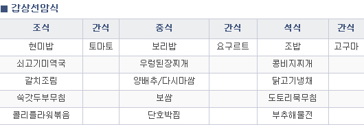 - 채소반찬은 매끼 두가지 이상 충분히 먹습니다.